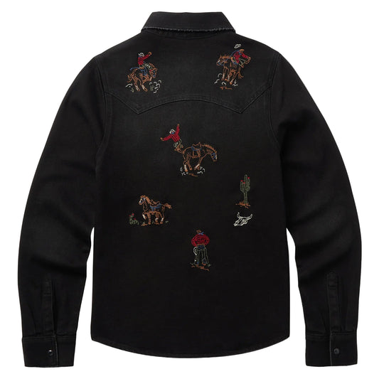 STETSON WESTERN EMBROIDERED BLACK DENIM SHIRT
