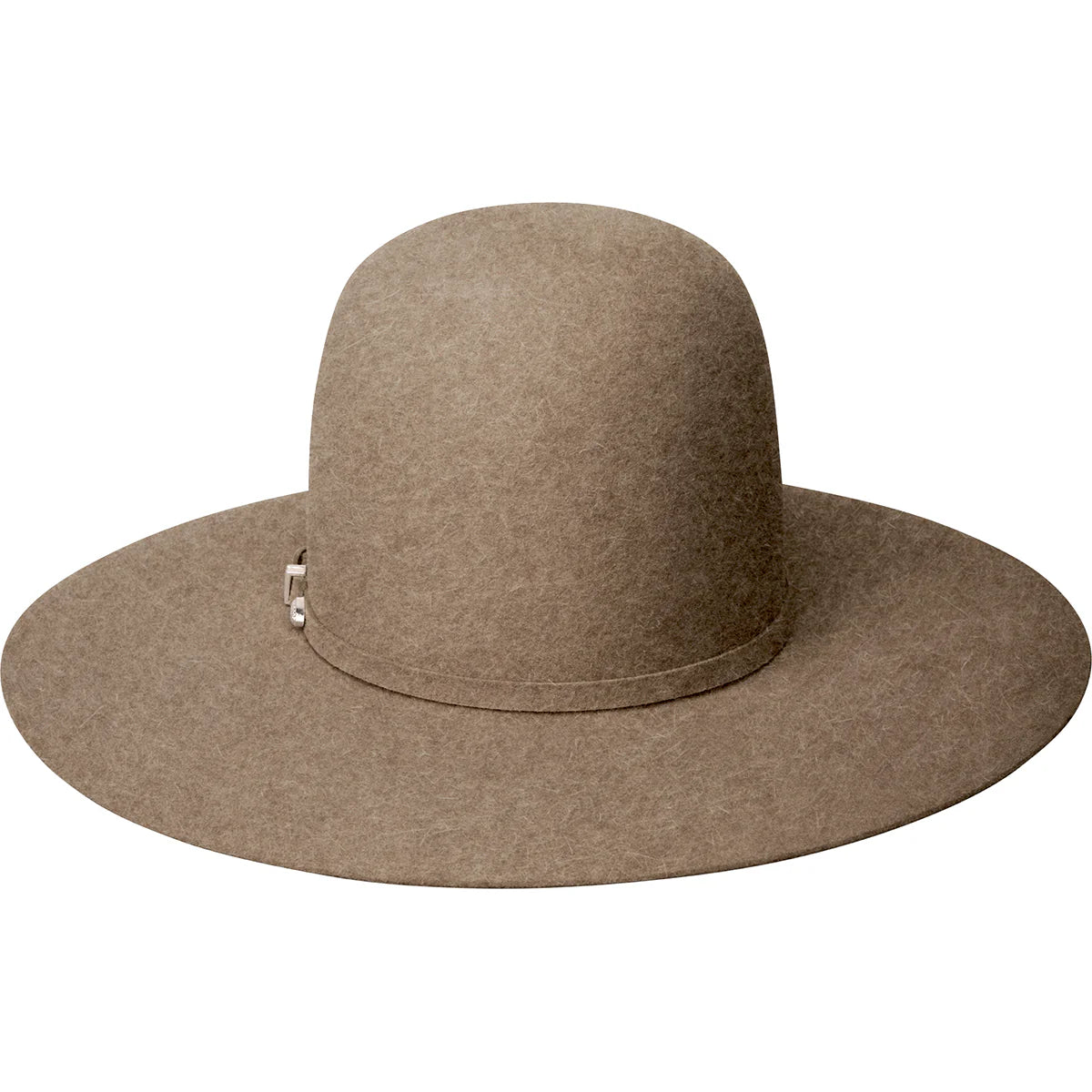 The Pro 7X Open 4.25 is a 7X Fur Felt 6" Open crown. It can be customized by our professional hat shaper. It has a self-felt band with a silver buckle set. The inside of the crown has a genuine leather sweat and is fully lined in satin.