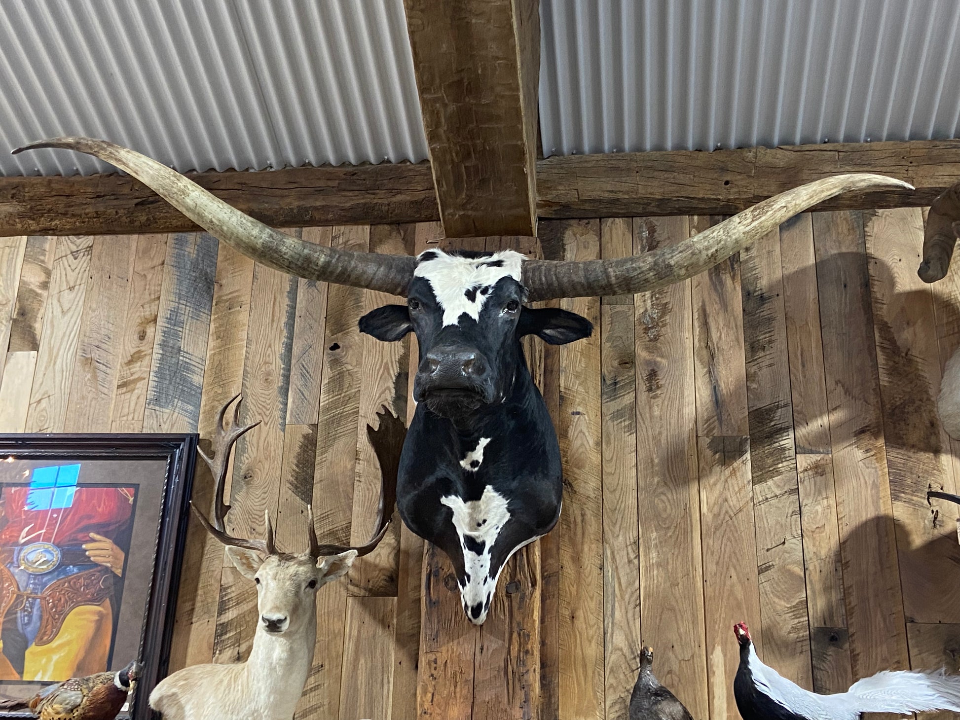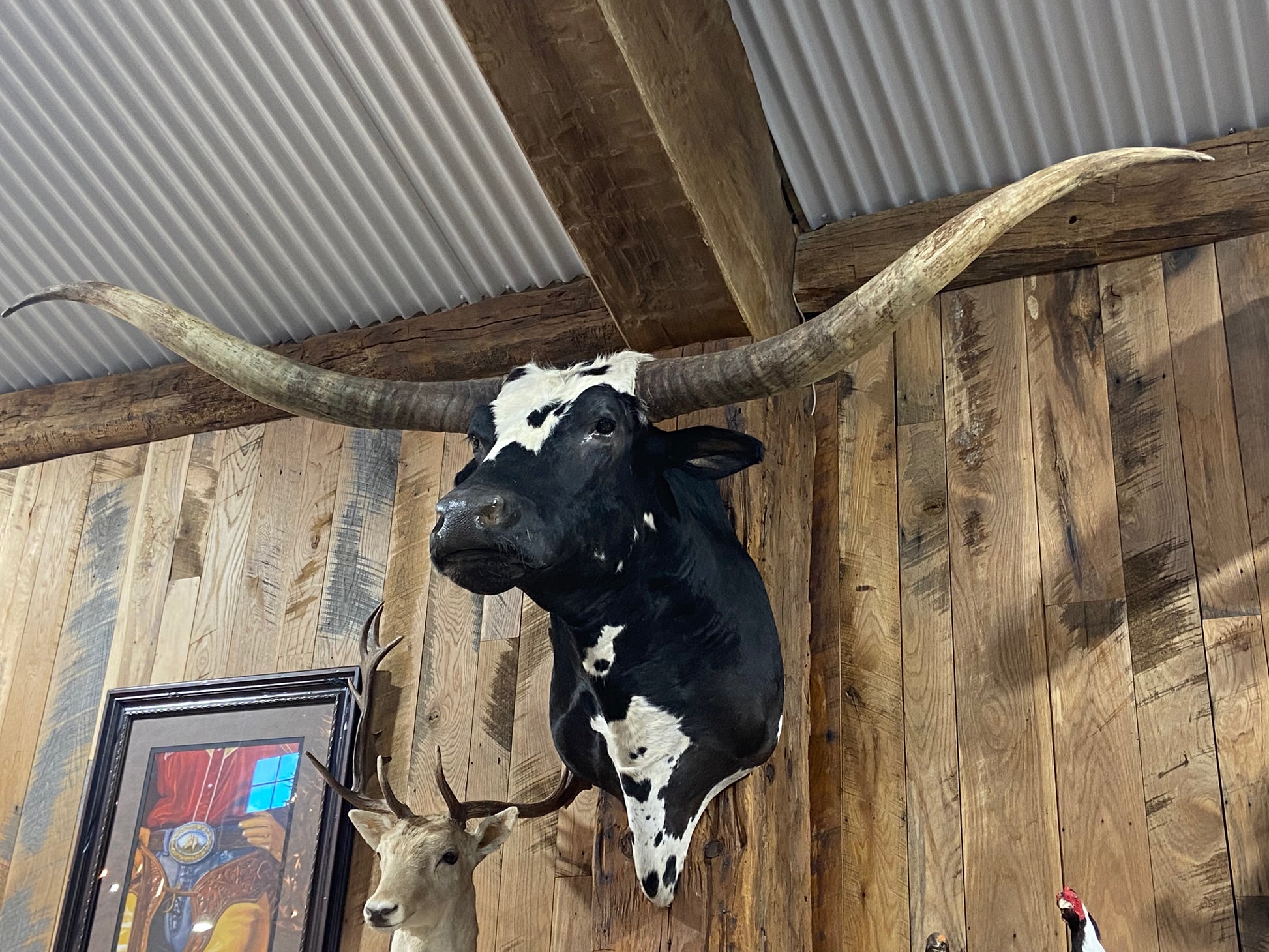 This black and white longhorn is a great mount for any size homestead. Being on the littler side of the mount side it wont overpower the smaller homes and offices that it could be placed in while still being very filling.