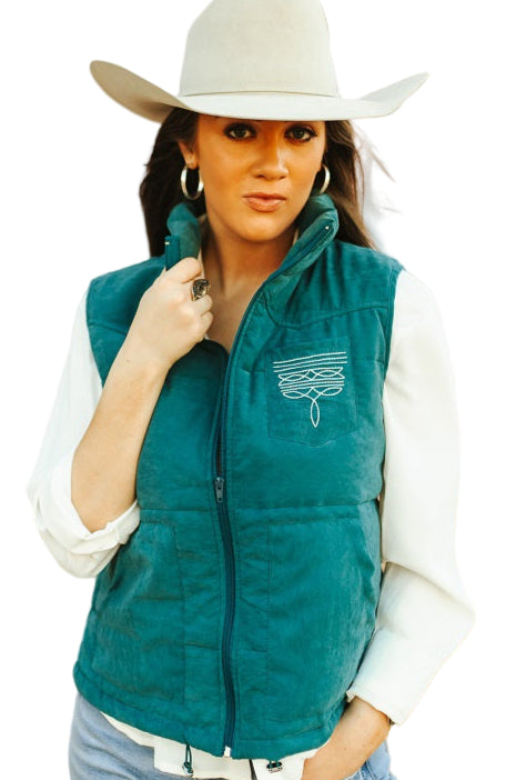 BOOT STITCH PUFFER VEST W/AZTEC LINING - TEAL