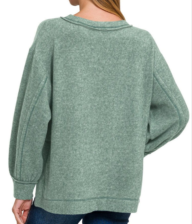 This Hi-low sweatshirt style sweater with breast pocket will be your new favorite!