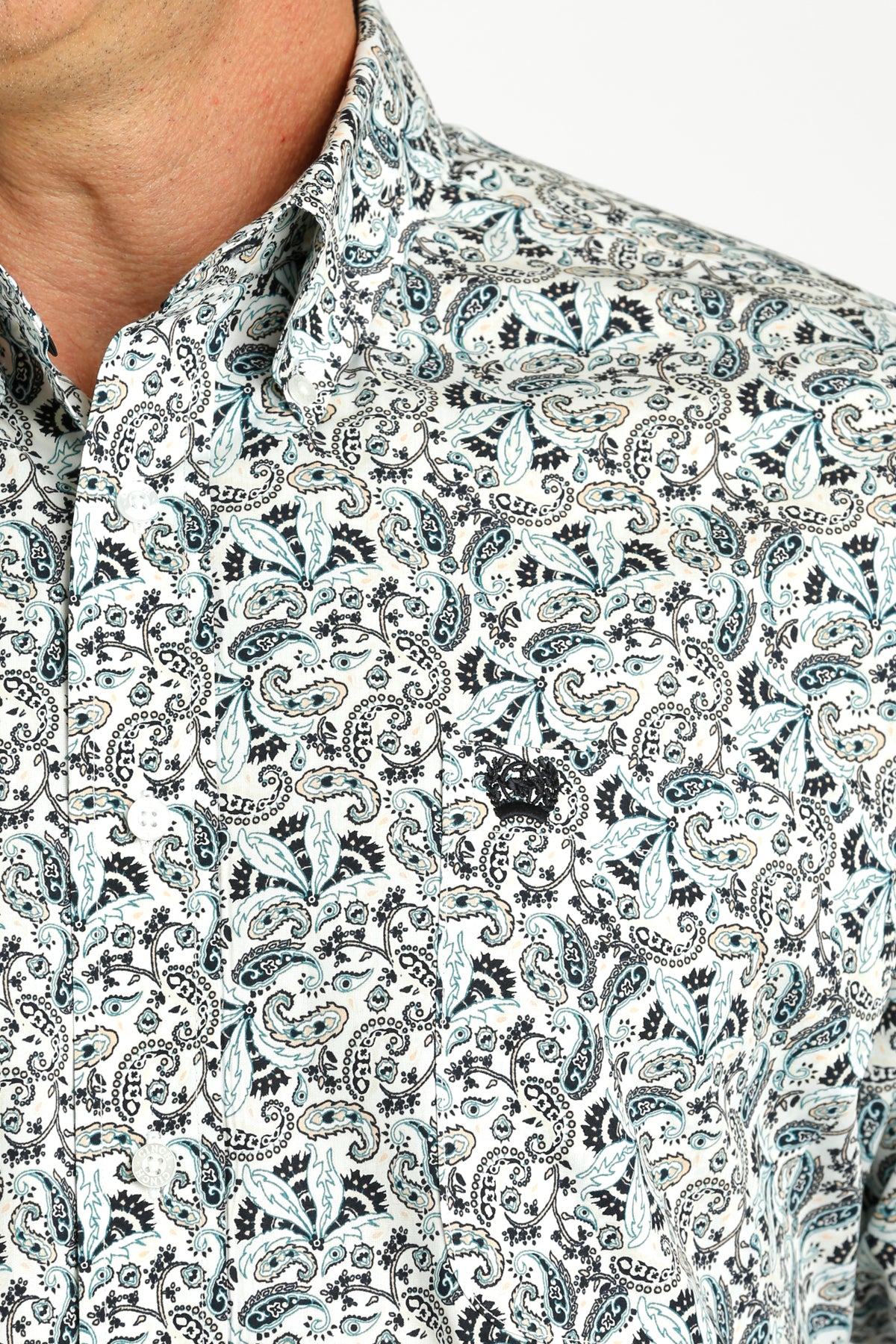 With classic style, a comfortable fit, and a timeless white paisley design, this shirt has it all. Cotton plain weave construction features an open left front pocket with embroidered CINCH logo and white buttons.
