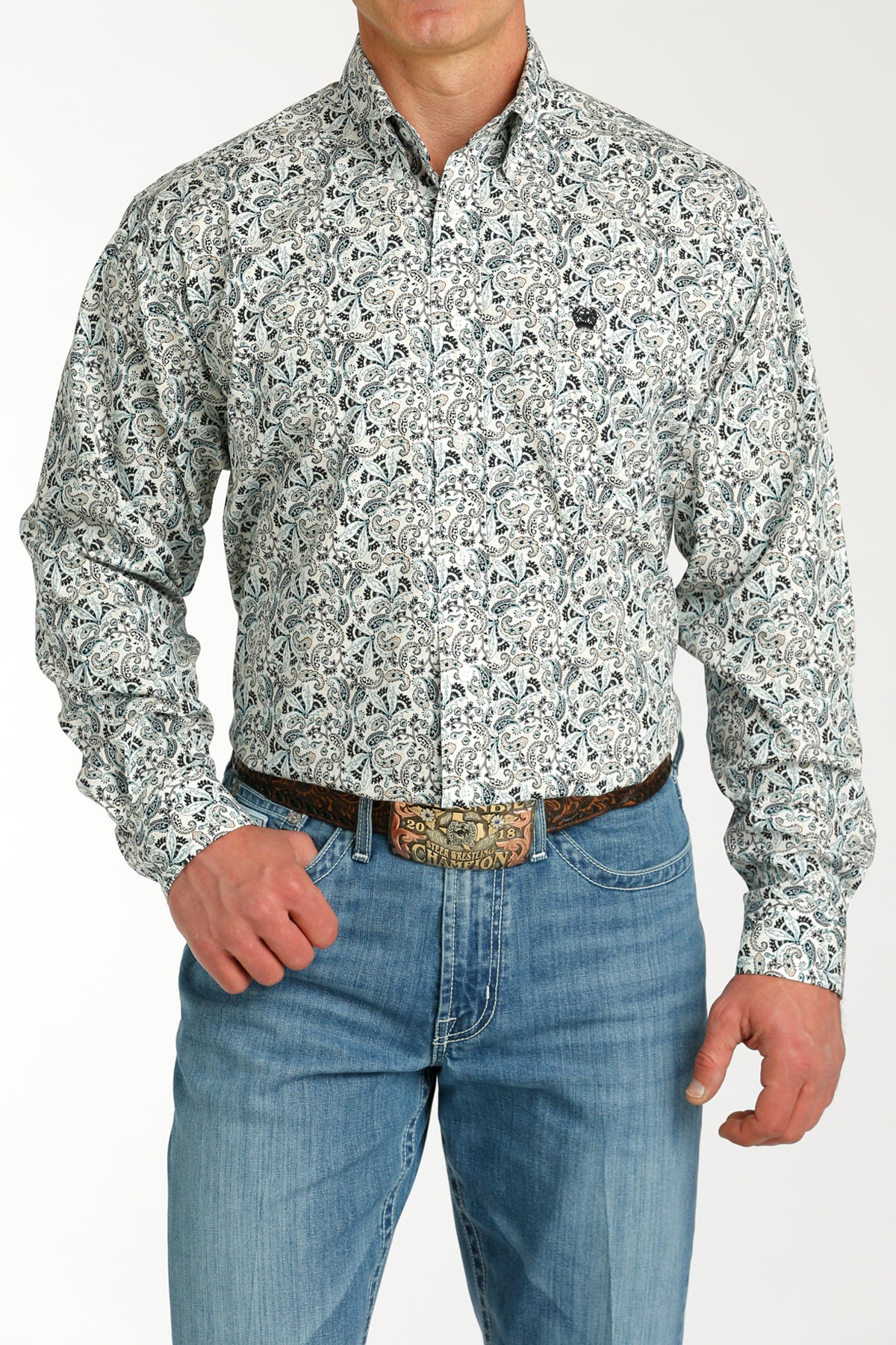 CINCH MEN'S PAISLEY BUTTON-DOWN WESTERN SHIRT - WHITE
