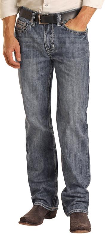 ROCK & ROLL MEN'S RELAXED FIT TWO TONE MEDIUM WASH STRAIGHT BOOTCUT JEANS