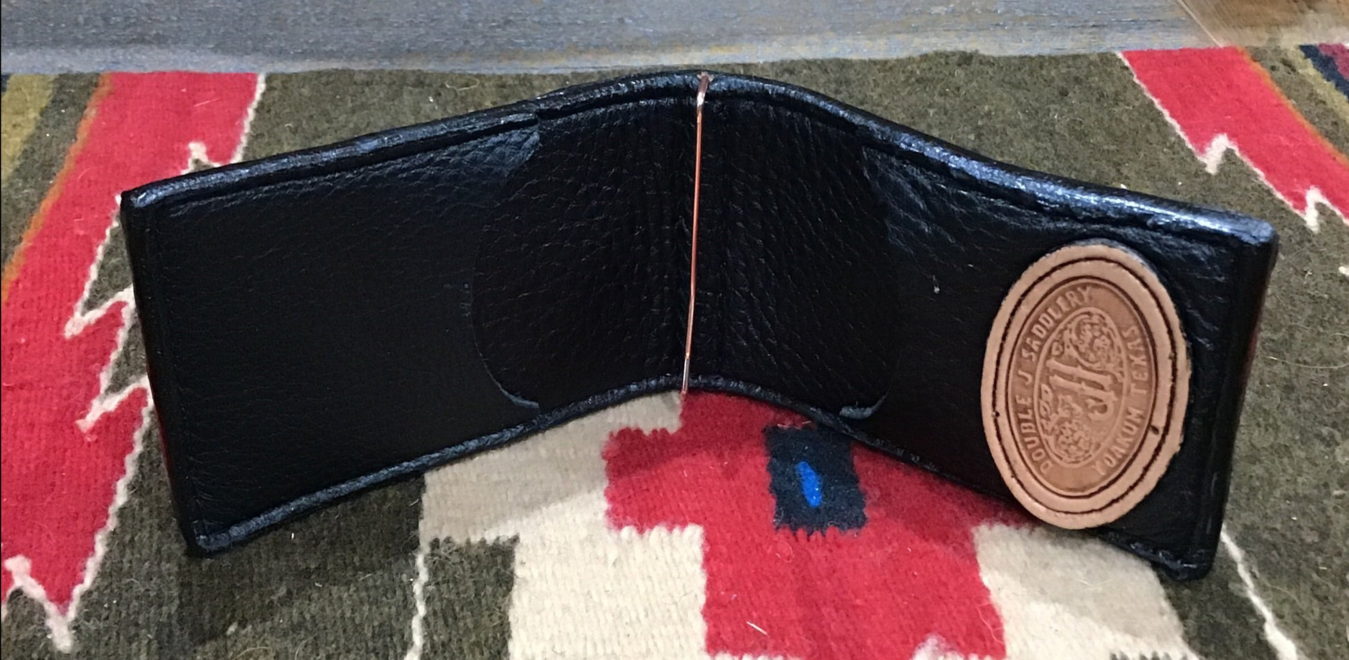 This Double J Saddlery money clip is made from genuine ostrich leather. Once opened sports two pockets for your credit cards and others. The middle then sports your clip for your cash. MC35