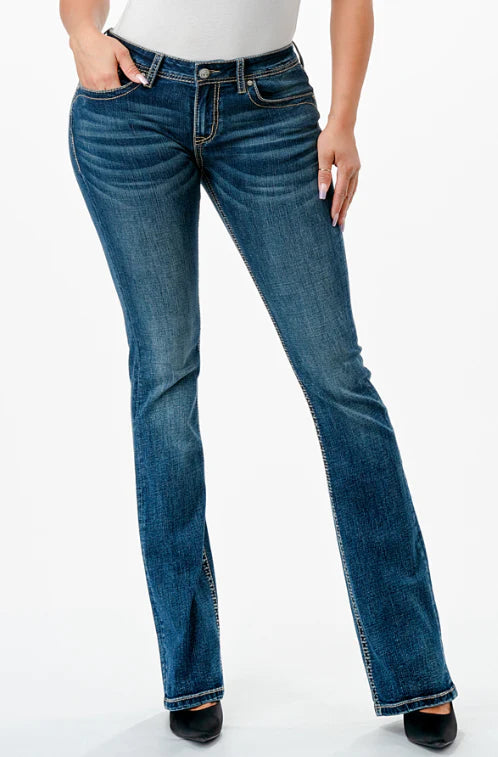 GRACE IN LA WOMEN'S BASIC MID RISE BOOTCUT