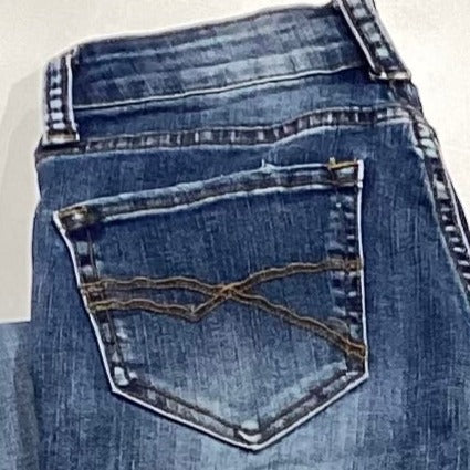 Just a simple pocket great fitting jean. This Easy fit jean will hug your curves and look amazing. Basic medium wash in a bootcut jean.
