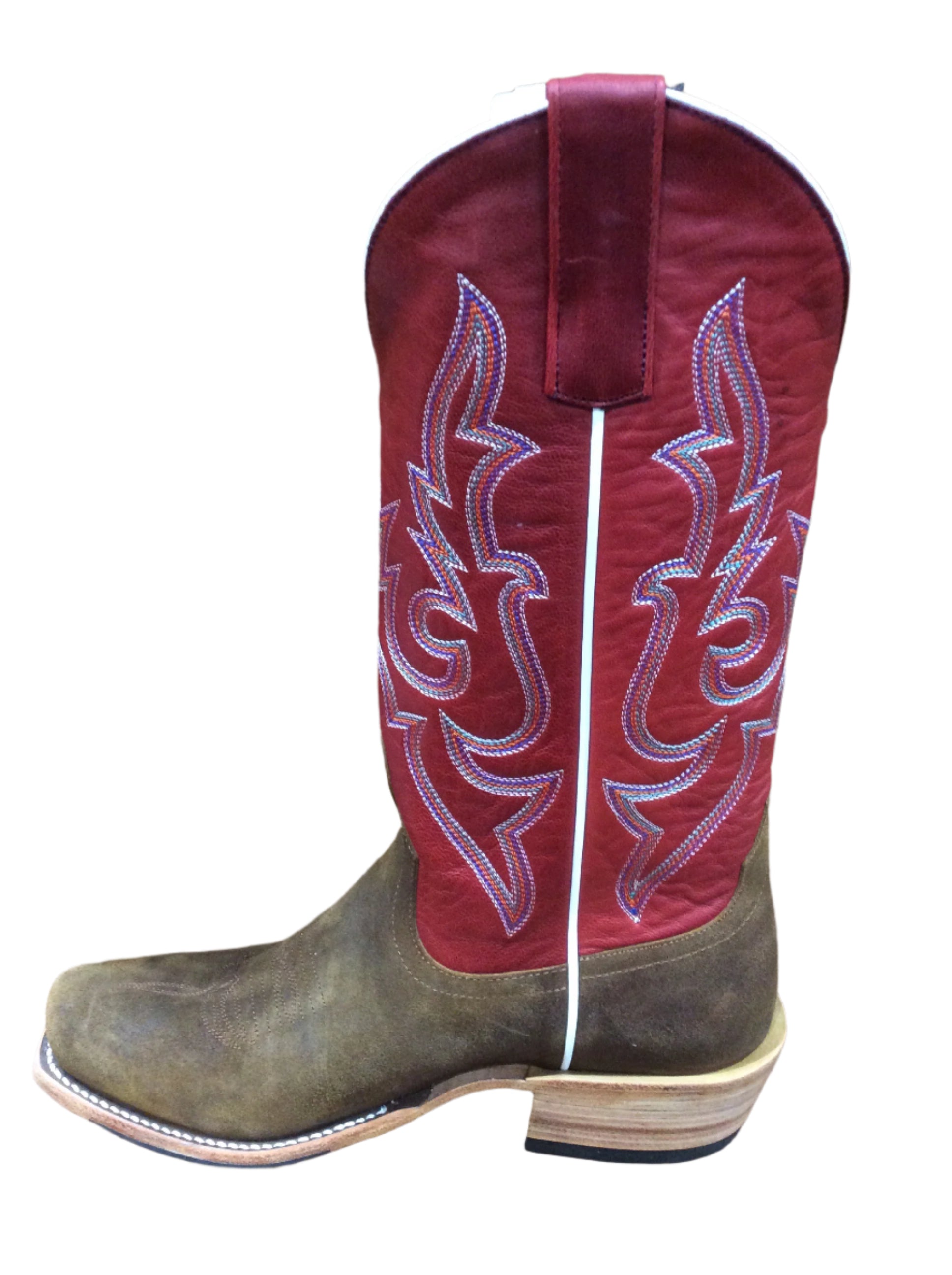 The waxy commander features a roughout kudu hide topped with a red top. Being placed with a cutter toe and riding heel and a hybrid sole makes for a great for the on the go cowboy, but it always does great for casual wear also. Finished with a 13" shaft allows for everyone to sport it.