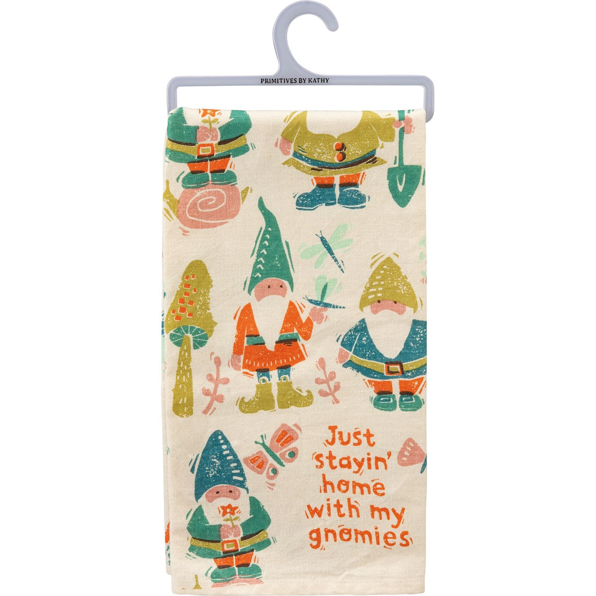 "JUST STAYIN' HOME WITH MY GNOMIES" DISH TOWEL