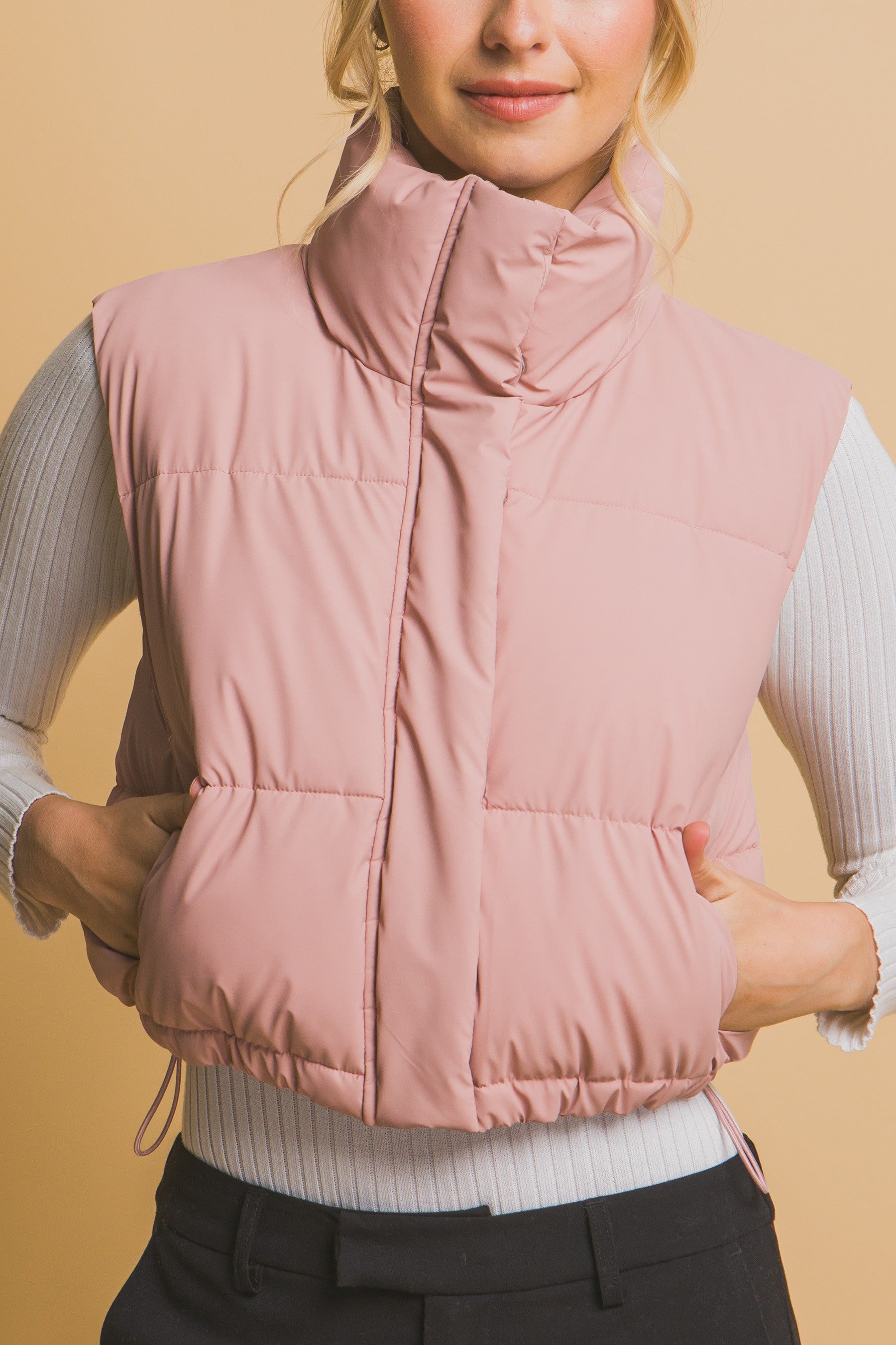 LADIES CROPPED PUFFER VEST in PINK or IVORY