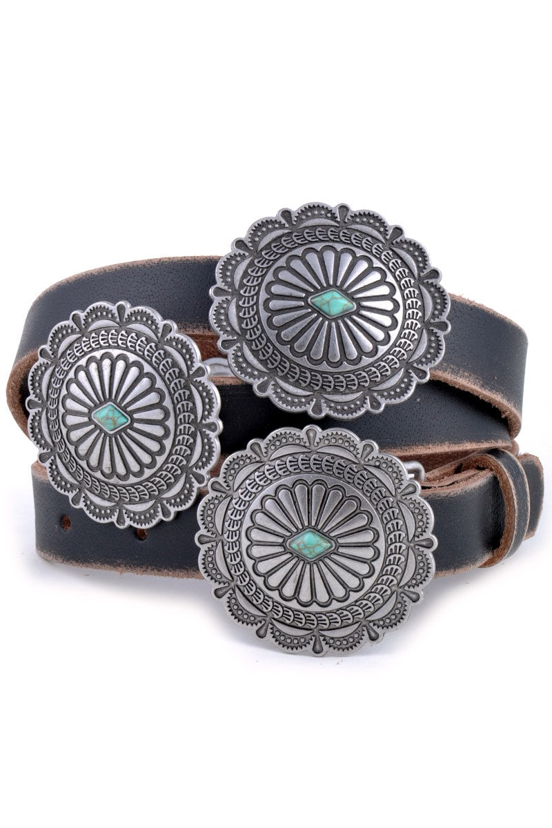 LADIES WESTERN ROUND CONCHO BLACK LEATHER BELT