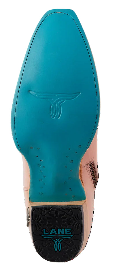 Featuring a convenient side zipper, these knee-high boots are easy to slip on and off, while the pull tabs and slightly distressed finish give them a well-loved, authentic feel. The pointed toe and classic Cuban heel provide a flattering silhouette, and the signature Lane turquoise sole adds a unique pop of color with every step.