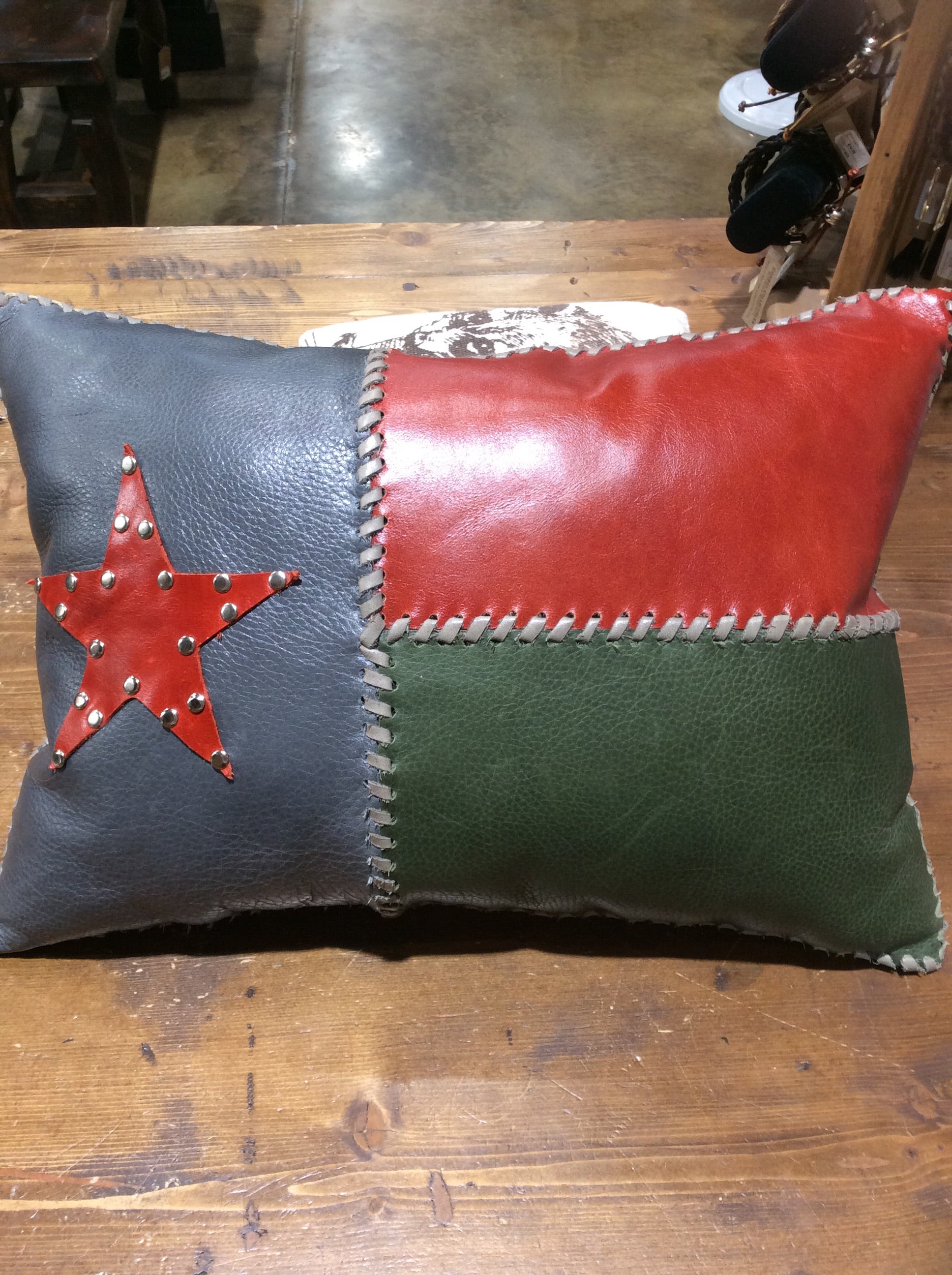Great little lumbar pillow! This handmade, one of a kind pillow can be yours. It is 11 1/2" by 16" and fully reversible. Browns on one side, and blues, reds and greens on the other. Only one side features a red studded star.