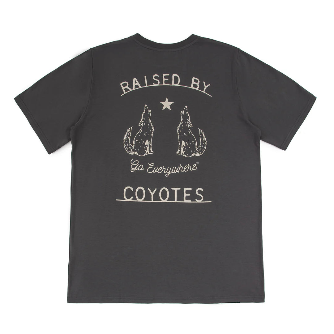 Feel great in our Raised by Coyotes Go Everywhere bootstitch pocket t-shirt.