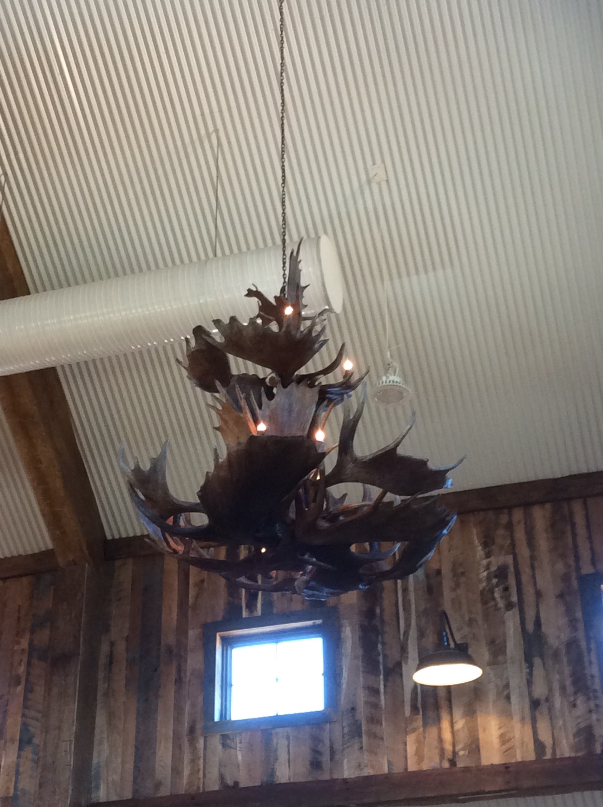 This moose chandelier is a beautiful piece made solely from moose antlers. 12 lights surround the light to give a truly a,amazing look.