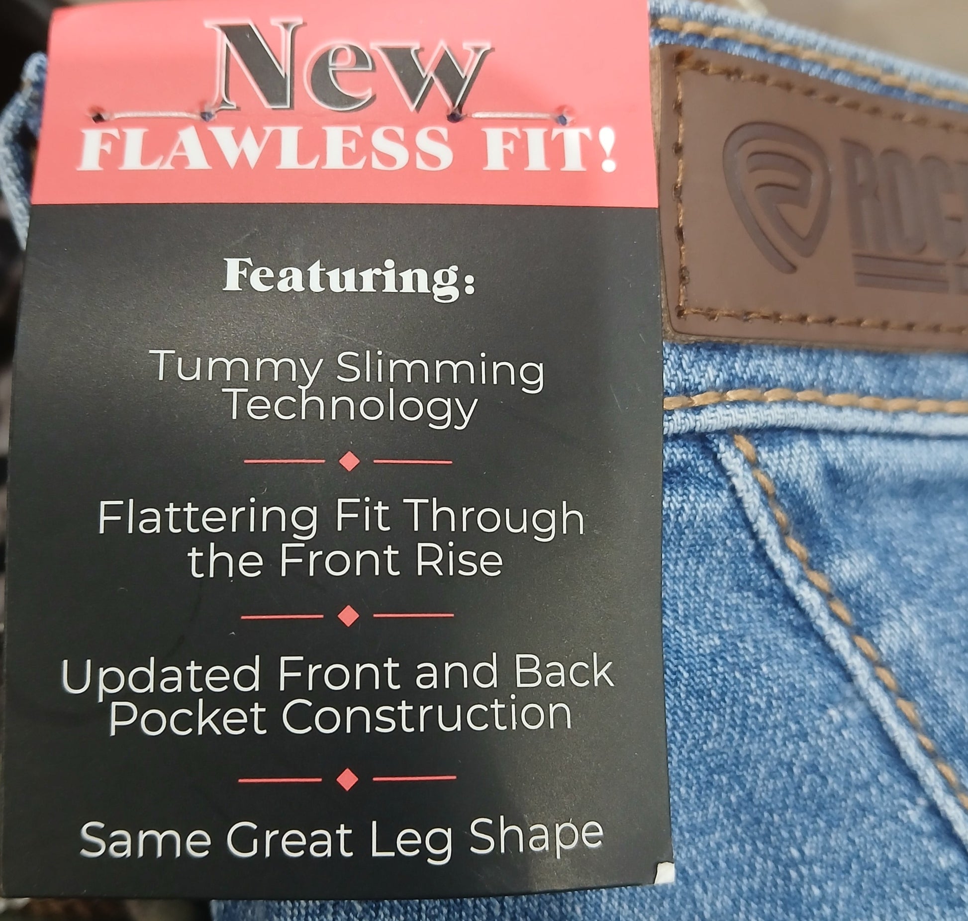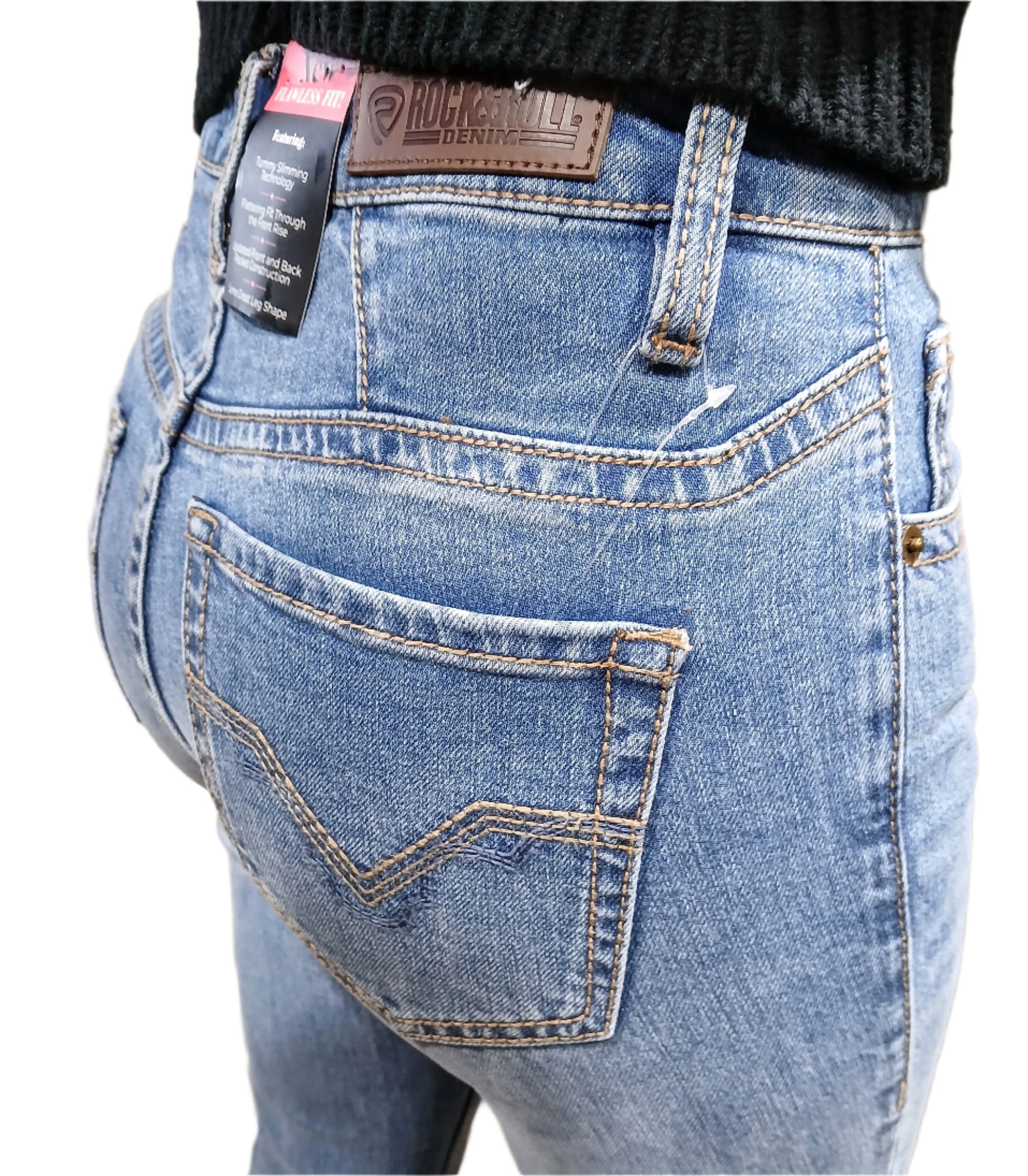 ROCK AND ROLL DENIM LADIES YOKE DETAIL HIGH RISE BOOTCUT JEANS - MEDIUM WASH