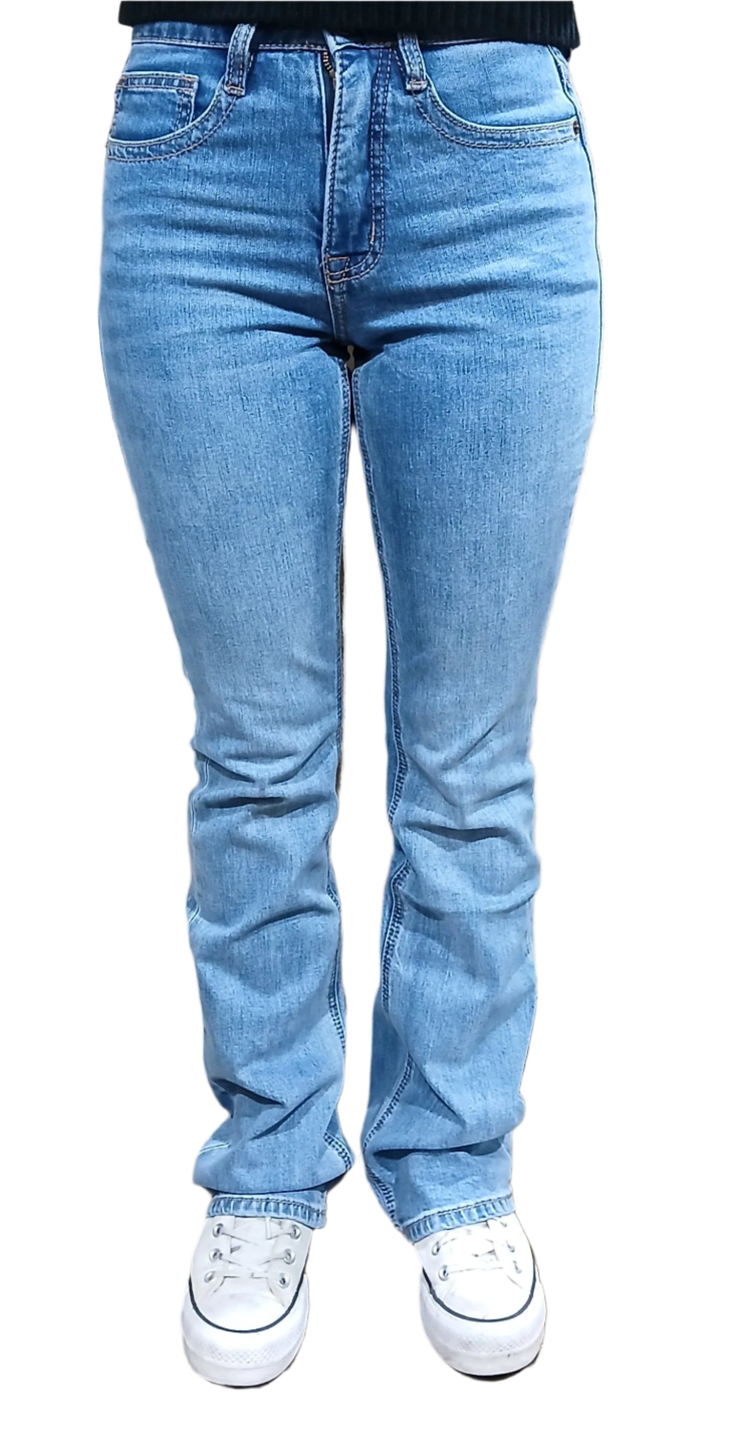 These medium wash high-rise modest boot jeans combine style and comfort effortlessly. The regular fit and extra stretch from the 92.5% cotton, 6% polyester, and 1.5% spandex blend ensure a flexible fit.