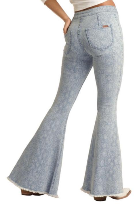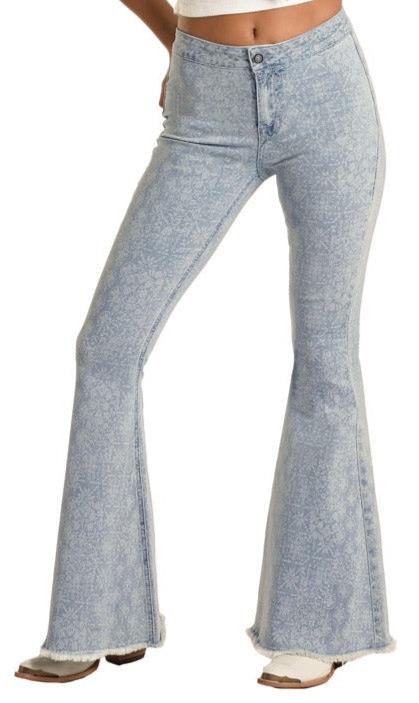 Rock & Roll Cowgirl Junior's Bargain Bells High Rise Extra Stretch Bell Bottom Jeans FLORAL