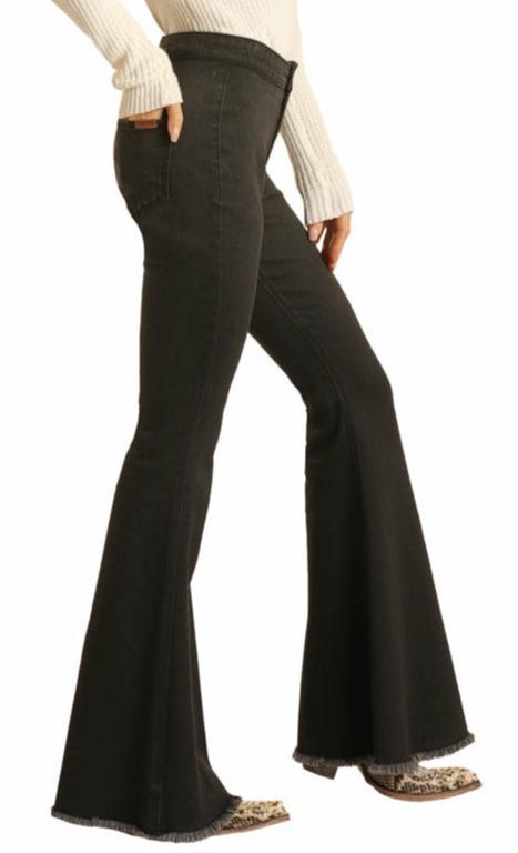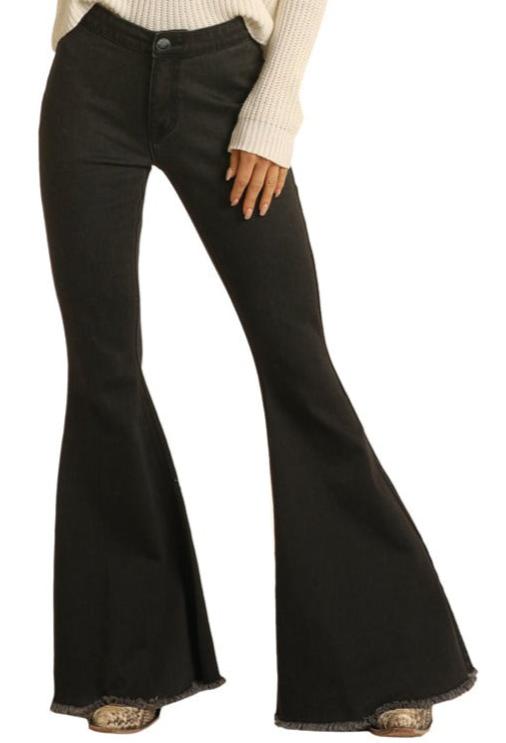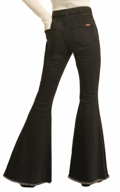 Rock & Roll Cowgirl Ladies Bargain Bells High Rise Pull-On Stretch Bell Bottom Jeans - Black
