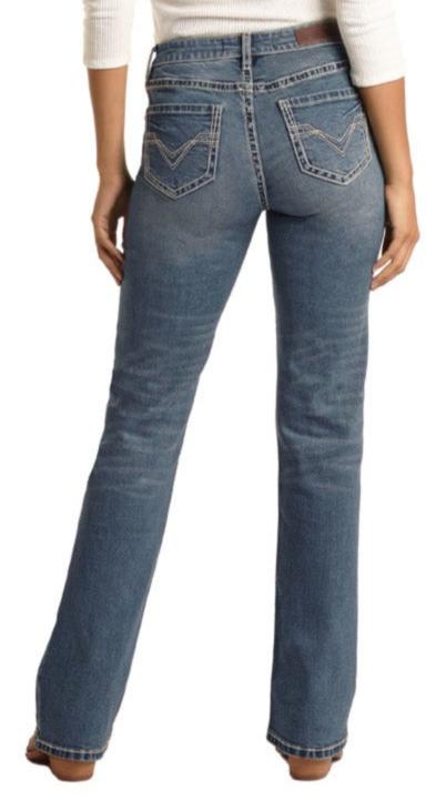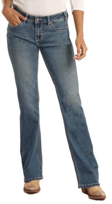 Rock & Roll Denim Ladies Light Vintage Mid Rise Extra Stretch Boot Cut Jeans