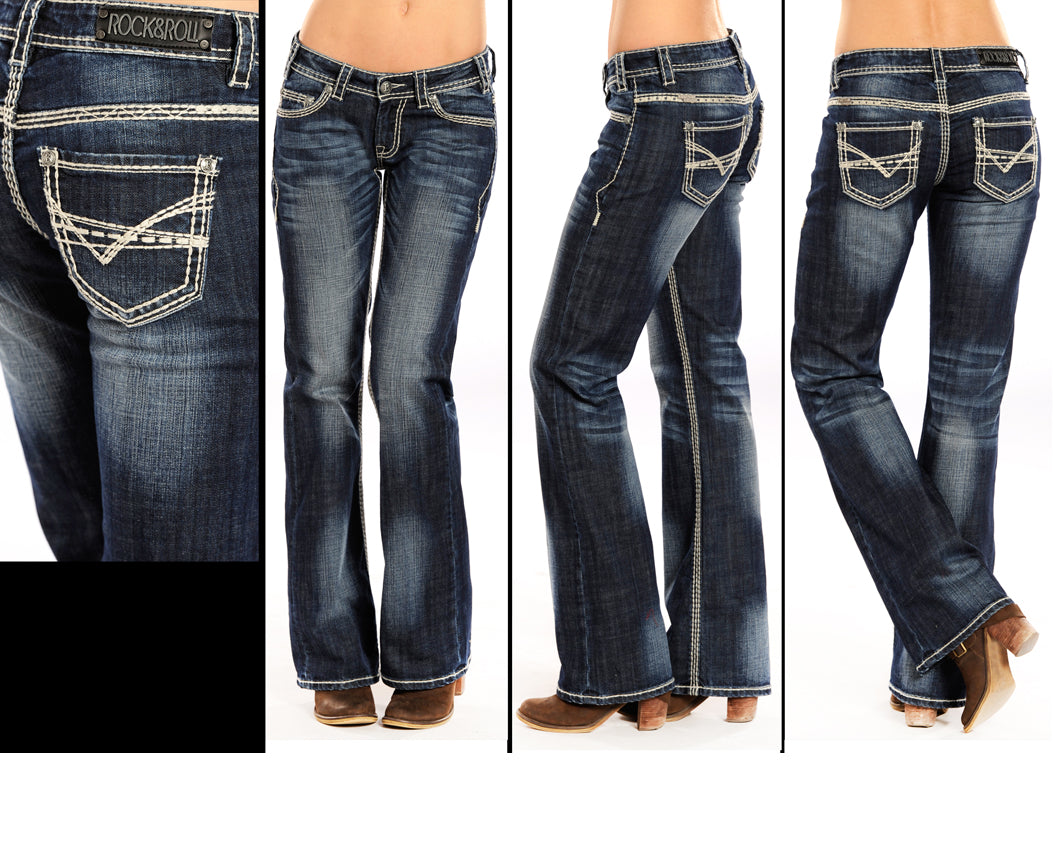 Rock & Roll Denim Women's Stretch Riding Bootcut Jeans- Dark Vintage