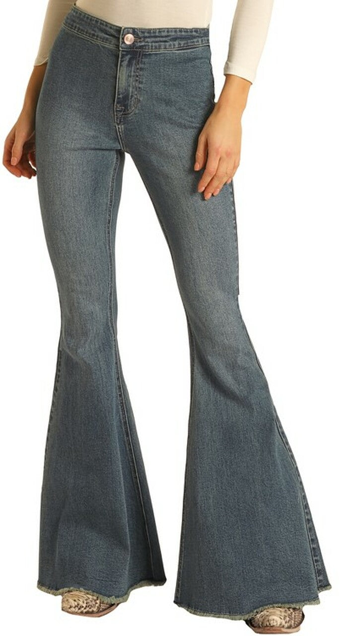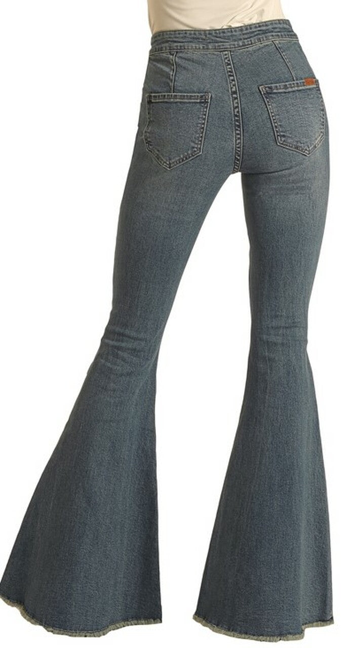 Rock & Roll LADIES BUTTON BELLS HIGH RISE STRETCH FLARE JEANS