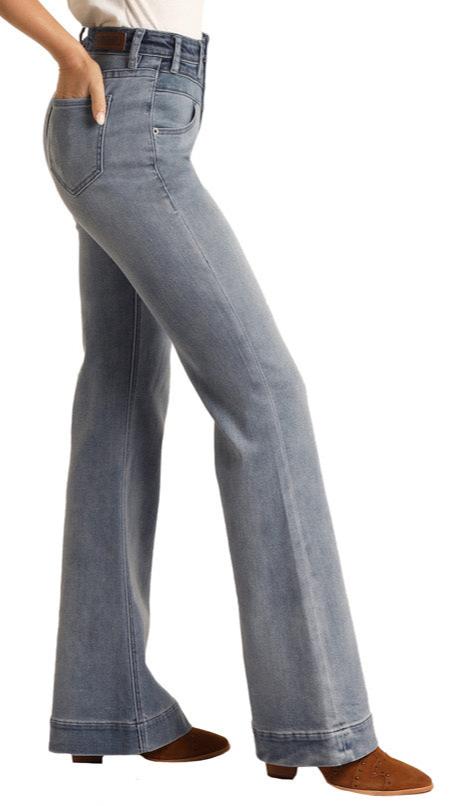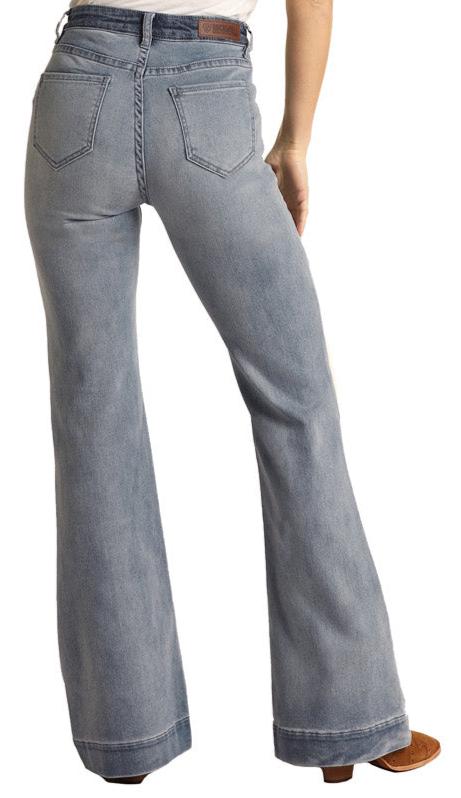 Rock & Roll Ladies Light Wash Yoke Front High Rise Trousers