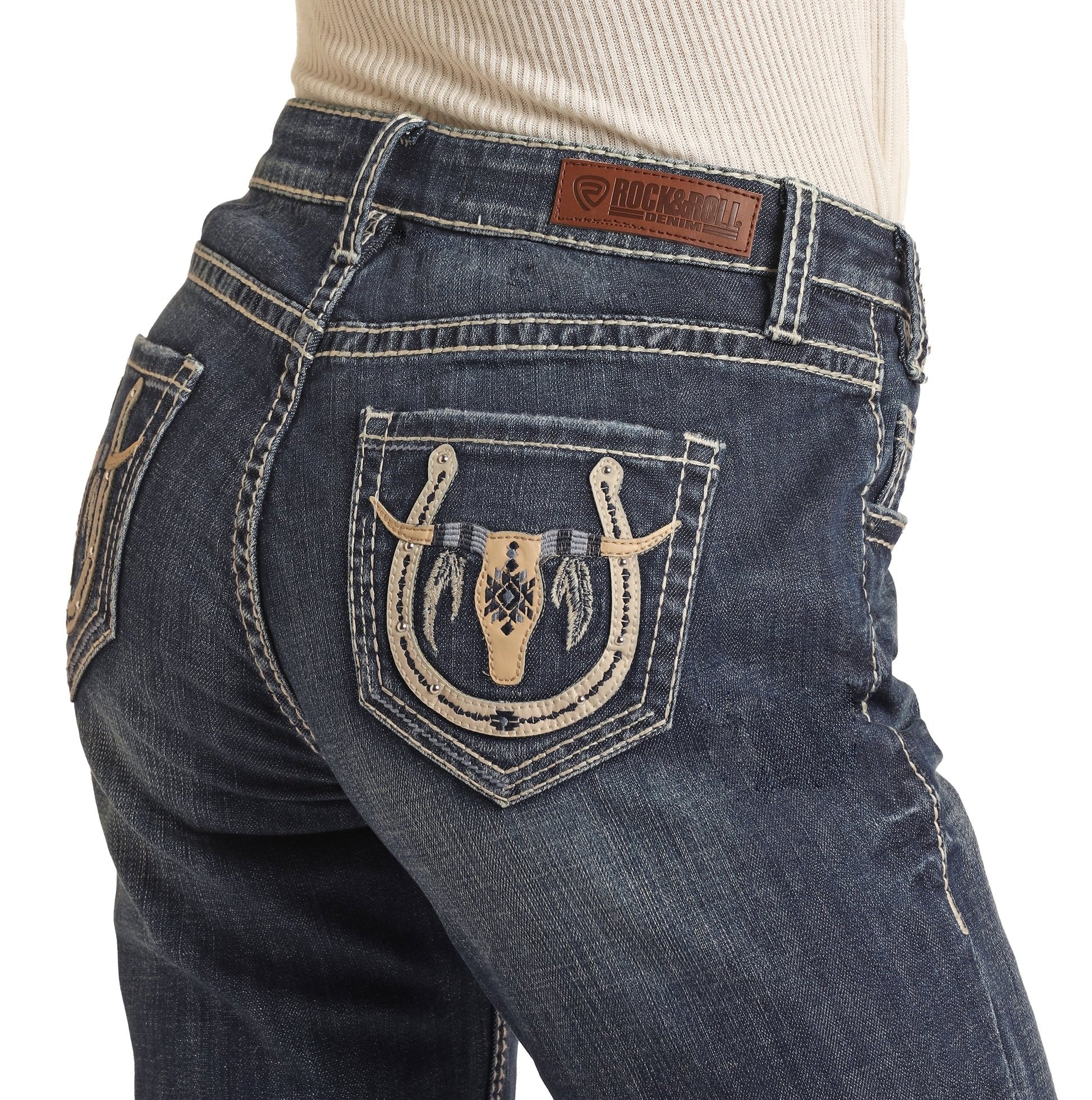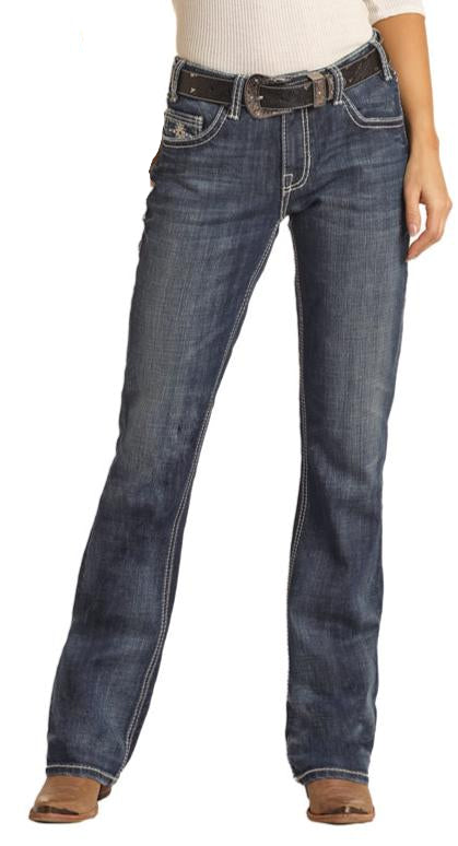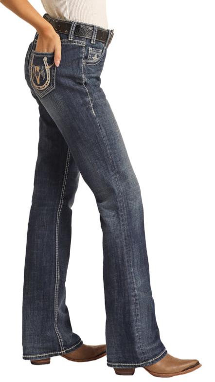 ROCK & ROLL LADIES MID RISE "LONGHORN" BOOTCUT RIDING JEANS