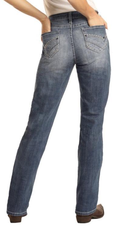 ROCK & ROLL LADIES MID RISE STRETCH BOYFRIEND STRAIGHT JEANS