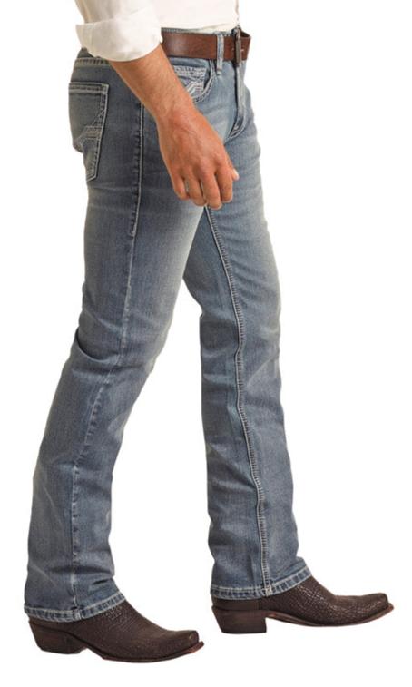 Looking for some fashion men's jeans that you can wear with boots, these Rock and Roll Cowboy jeans are a great choice. Durable enough for work yet highlights the latest trends in western fashion; the Slim Fit Revolver Rock & Roll DENIM jeans are ready for ranching, riding, and rodeos or just a night out on the town.