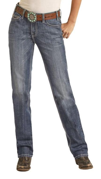 ROCK & ROLL WOMEN'S MID RISE MODEST BOOTCUT JEANS - MEDIUM VINTAGE