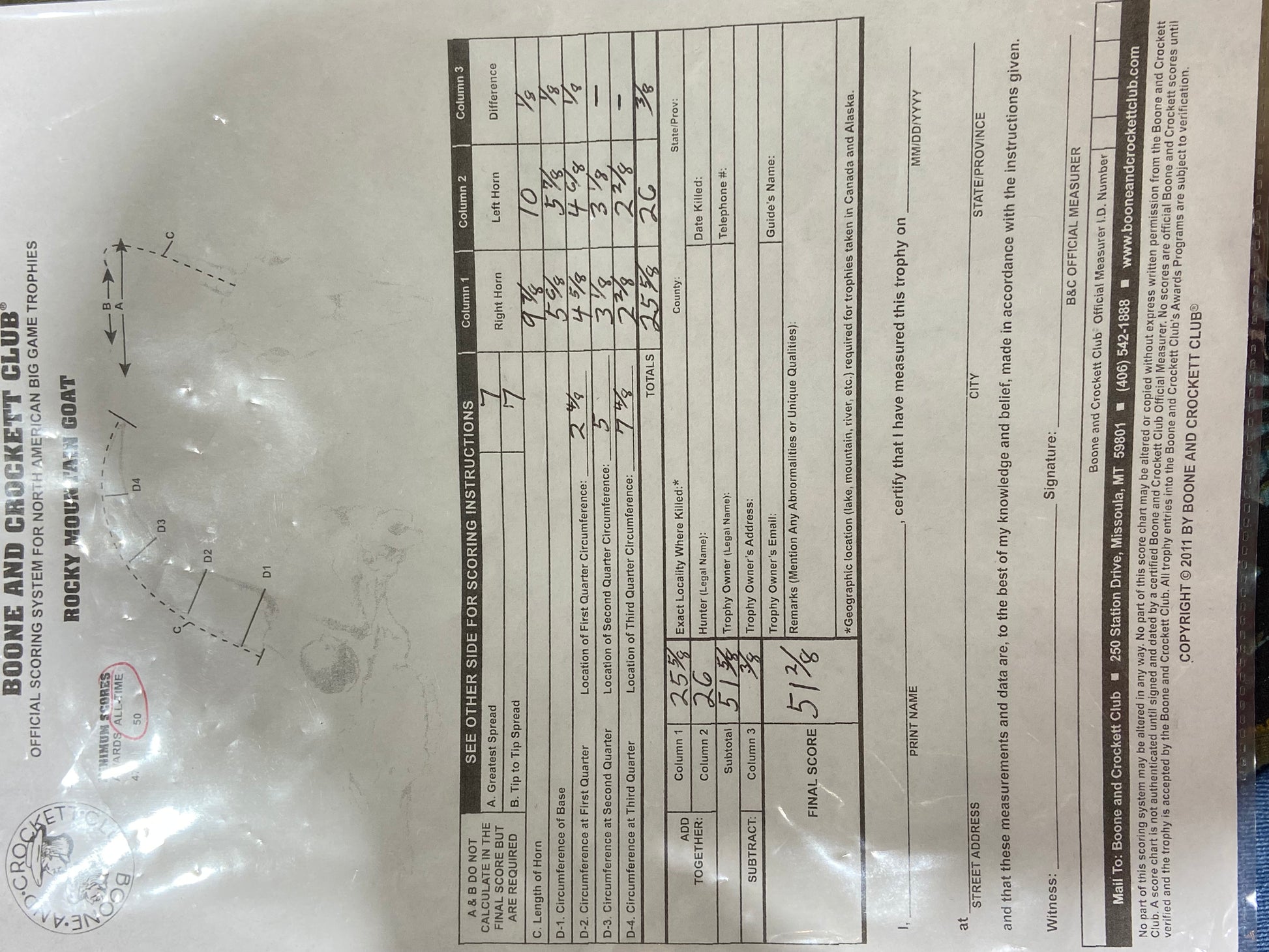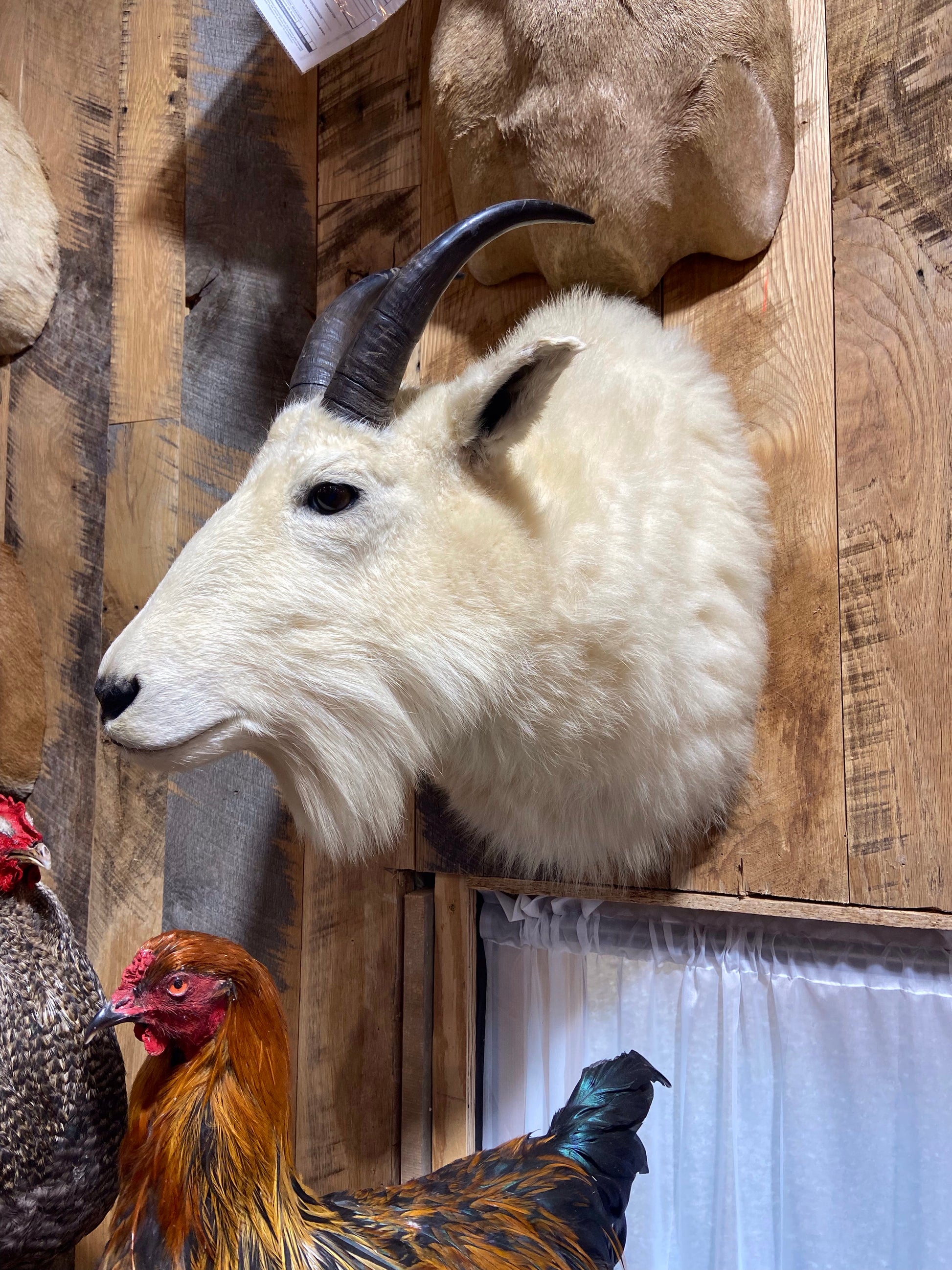 This Rocky Mountain Goat is a great little mount to add to your collection for that grand slam your after. Measuring in at 10" x 9 7/8" long, 5 6/8" x 5 7/8" around the base scores a 51 2/8 on the Boone & Crockett. Topping off with being a great mount in perfect condition makes this a must have collection piece.