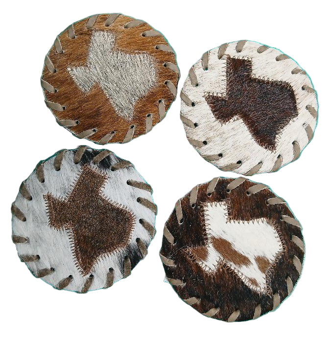 ROUND COWHIDE LACED COASTERS - STATE OF TEXAS