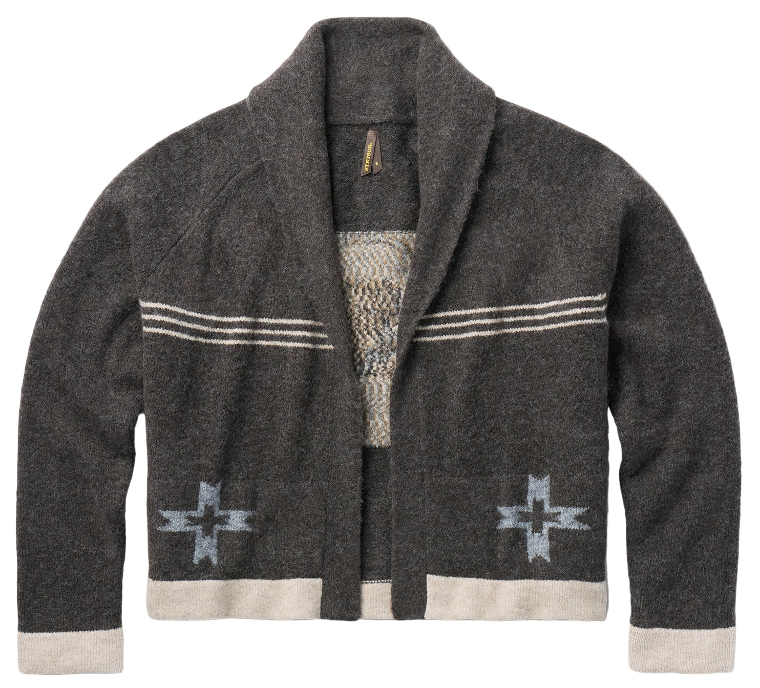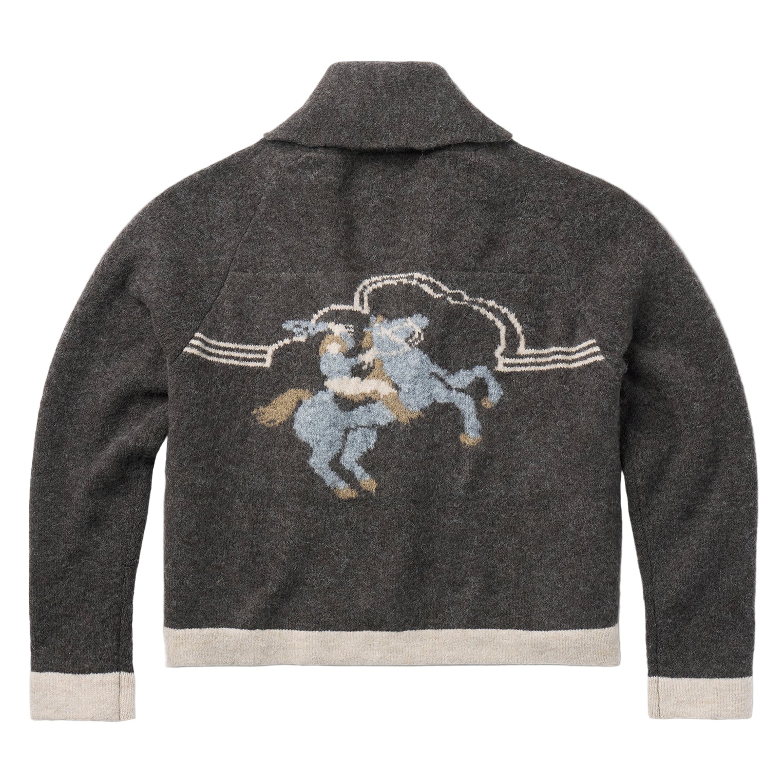 The Rodeo Girl Cropped Cardigan is knit from a soft, stretchy wool blend and features a bold retro-style cowgirl motif on the back. It has a classic shawl collar and contrast solid cream trim at the waist and sleeves. Like all of our women’s apparel, it’s thoughtfully designed and crafted for lasting comfort, quality, and style—from sunup to sundown.