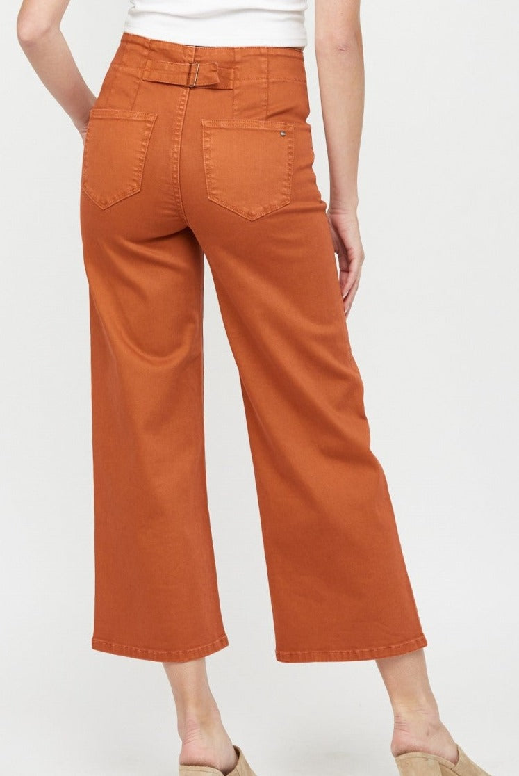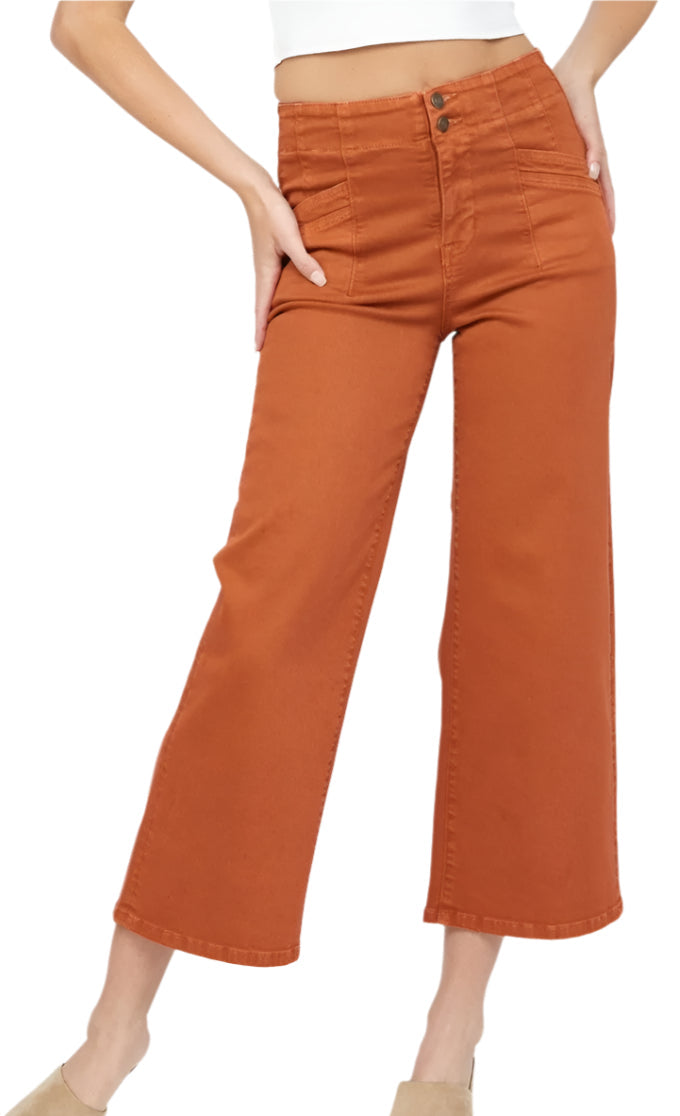 SUPER HIGH RISE WIDE CROP W/ DOUBLE BUTTON in PENNY