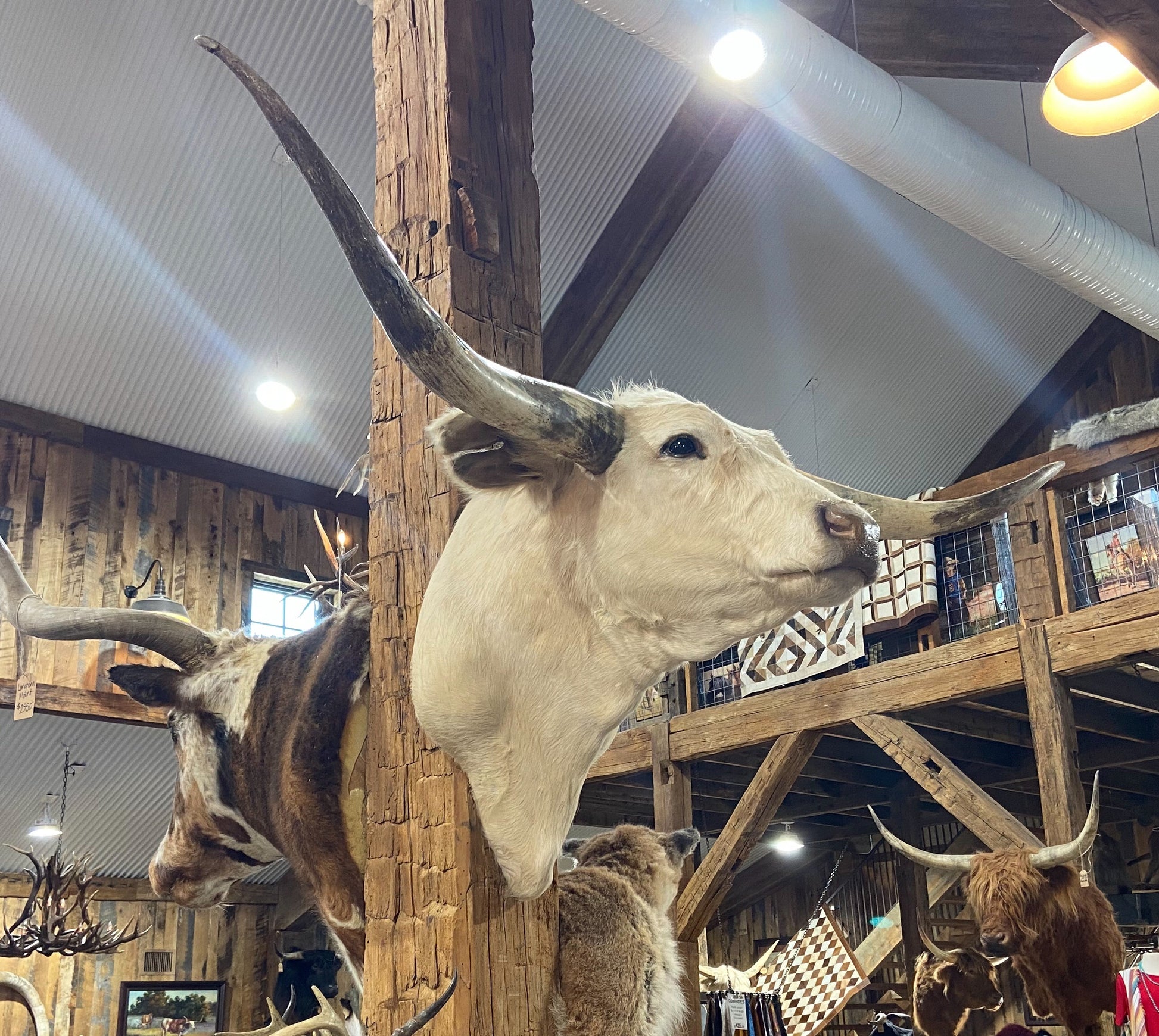 This white longhorn is a great little piece of taxidermy. Having the white tone allows for it to pop on fireplaces, and even wooden walls. Then with the sizes of it allows for it to fit nicely in any home without overpowering the room it sets in.